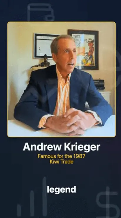 Andrew “Andy” Krieger is a Trader Hall of Famer, best known for his legendary 1987 short of the New Zealand dollar, the “Kiwi,” a trade that reportedly generated hundreds of millions in profit and cemented his status as one of the most formidable currency traders in history.